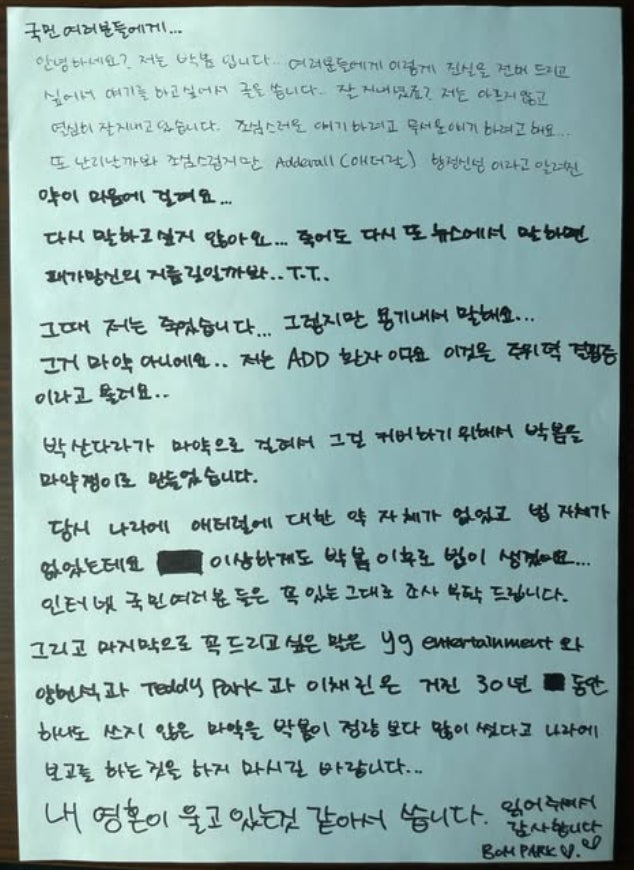 박봄 "산다라박 마약 덮으려 날 마약쟁이 만들어" 뜬금 저격글